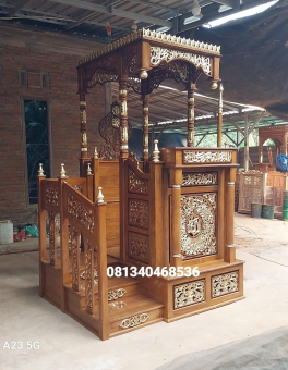- Mimbar Masjid Kubah Tiang Untir Kayu Jati Jepara 1